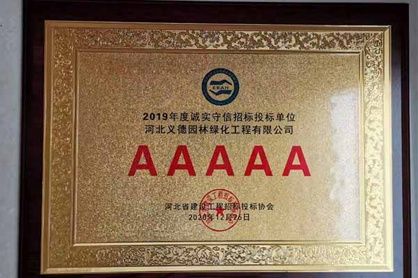 近幾年來(lái)我公司被授予2019年-2022年河北省扶貧龍頭企業(yè)、2018年國(guó)家林業(yè)標(biāo)準(zhǔn)化示范企業(yè)、2019年度全國(guó)苗圃50強(qiáng)、2018-2019年度河北省林業(yè)重點(diǎn)龍頭企業(yè)、2018年保定市精品特色現(xiàn)代農(nóng)業(yè)園區(qū)、2018年度保定林木種苗協(xié)會(huì)授予特色苗圃、2018年度北方十佳特色苗圃、2016-2019年河北省建設(shè)工程招標(biāo)投標(biāo)誠(chéng)實(shí)守信5A級(jí)施工企業(yè)等榮譽(yù)稱號(hào),2017年保定市林木種苗龍頭企業(yè)、石家莊市2017年度優(yōu)秀園林企業(yè)。