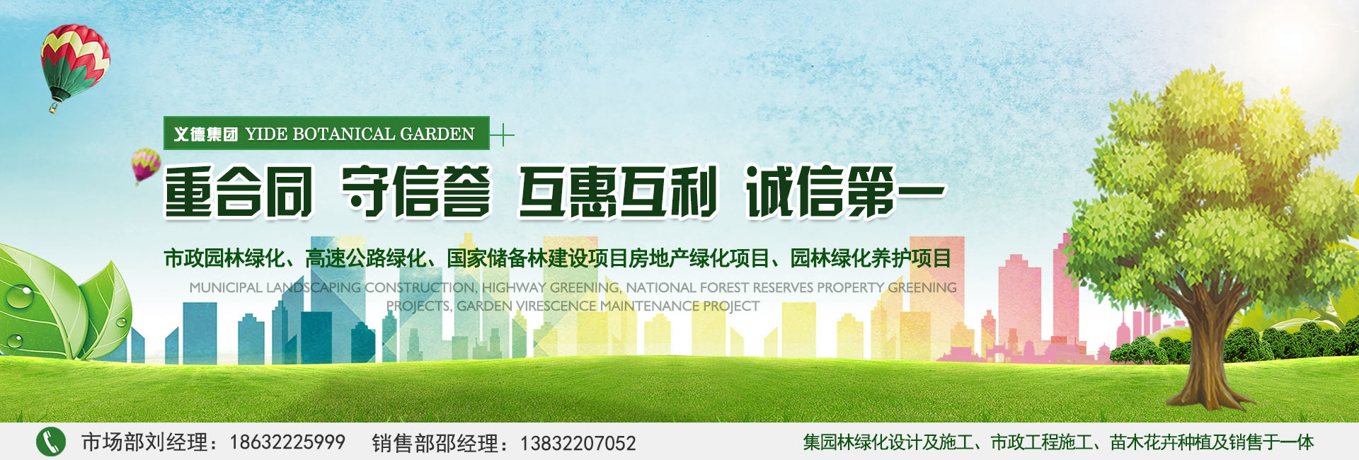 我公司本著重合同,守信譽(yù),互惠互利,誠(chéng)信第一的態(tài)度,踏實(shí)干事業(yè),契約必踐行的園林宗旨,逐步發(fā)展為今天集園林綠化設(shè)計(jì)及施工、市政工程施工、苗木花卉種植及銷(xiāo)售等綜合性園林綠化行業(yè)公司。